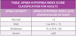 Home sleep apnea testing. Under certain circumstances, your doctor may provide you with an at-home version of polysomnography to diagnose obstructive sleep apnea. This test usually involves measurement of airflow, breathing patterns and blood oxygen levels, and possibly limb movements and snoring intensity. Severity of sleep apnea is described in the chart below based on findings from the sleep study.